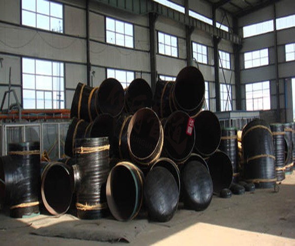 高密度聚乙烯外套防腐結構:在彎頭外表面包裹高密度聚乙烯材料制成,具有極高的機械強度和優良的耐腐蝕性能,可以保護頭在運輸、安裝及使用過程中避免因外界因素而造成的破壞。制造外套管應添加抗氧劑、紫外線穩定劑和碳黑等。聚乙烯外套管易老化,如露天存放宜用篷布等物遮蓋,堆放處應遠離高熱源和火源,制成防腐彎頭后,禁止暴曬、驟冷,否則聚乙烯外套管易開裂,影響產品性能和使用壽命。